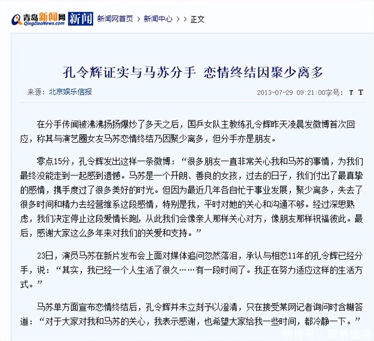 两东说念主谈恋爱技术,马苏的行状也一步步发展了起来,她庸俗在卤莽账号关注乒乓球的音讯,也会绝不惜啬对孔令辉的夸奖。