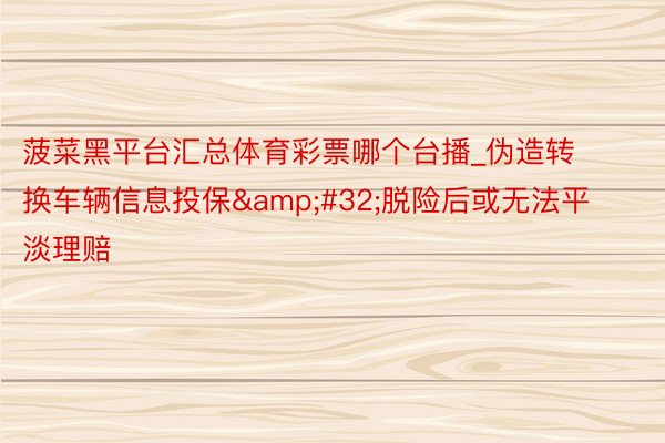 菠菜黑平台汇总体育彩票哪个台播_伪造转换车辆信息投保 脱险后或无法平淡理赔