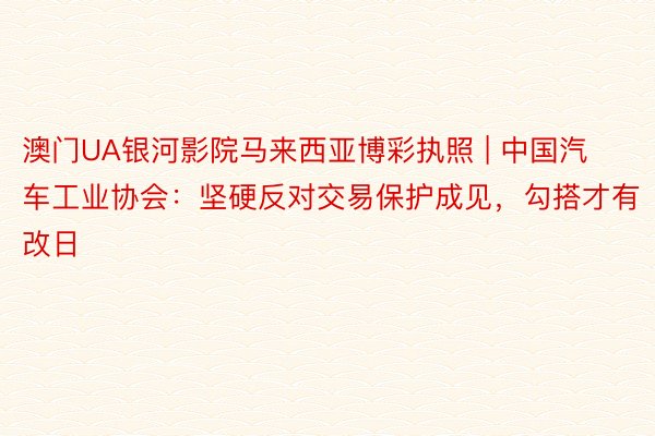 澳门UA银河影院马来西亚博彩执照 | 中国汽车工业协会:坚硬反对交易保护成见,勾搭才有改日