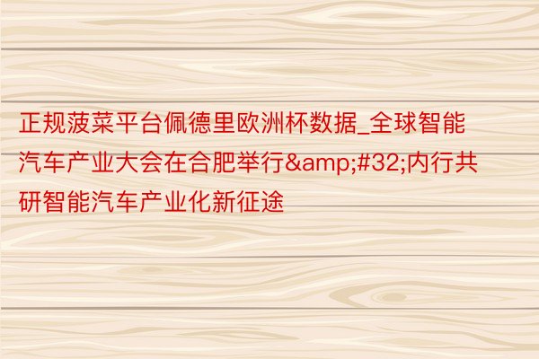 正规菠菜平台佩德里欧洲杯数据_全球智能汽车产业大会在合肥举行 内行共研智能汽车产业化新征途